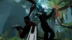 Jump in a truck and try to escape before you get eaten. This intense rail mission pits up to 4 players against swarms of dinosaurs, and pterodactyls, all leading to an epic T-Rex boss battle.